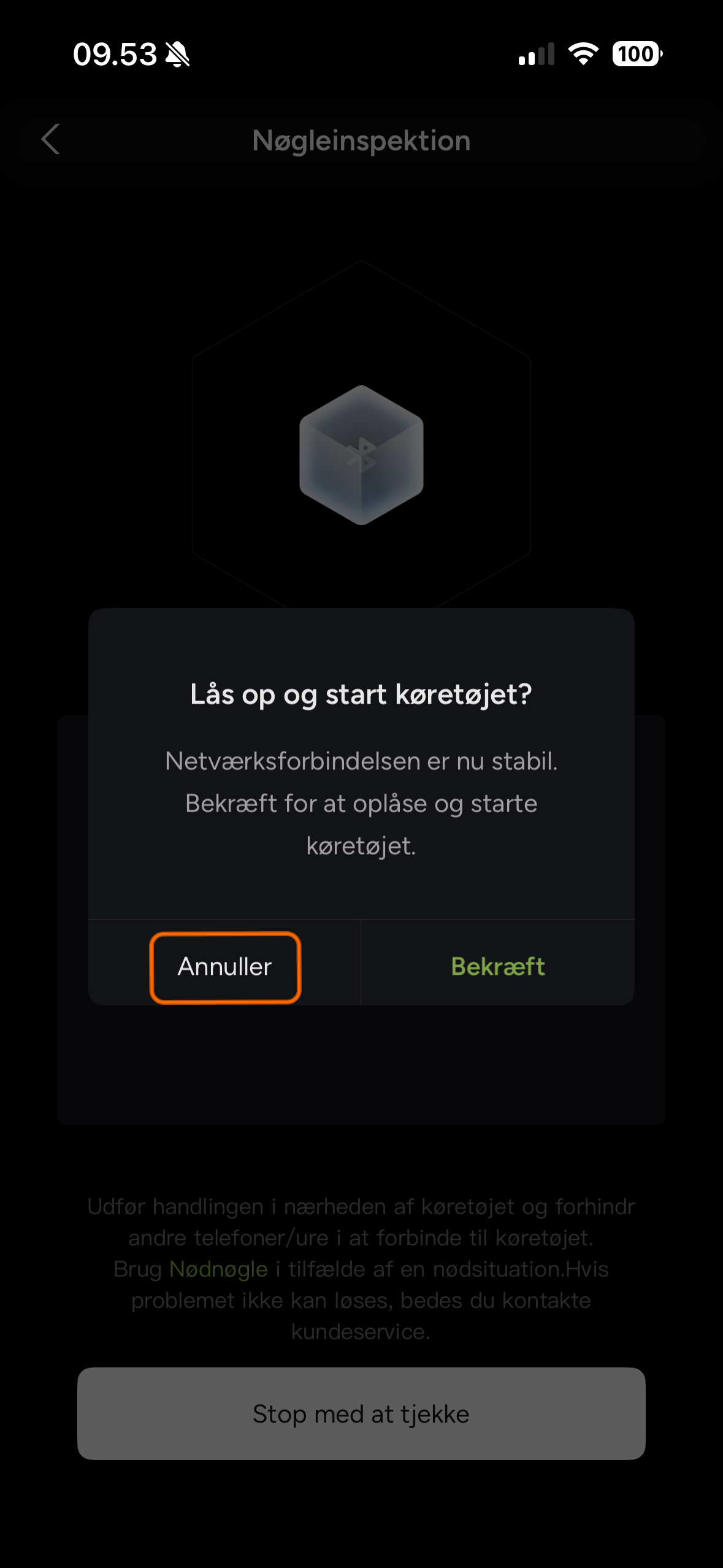 Når forbindelsen er etableret, kan køretøjet oplåses og startes.