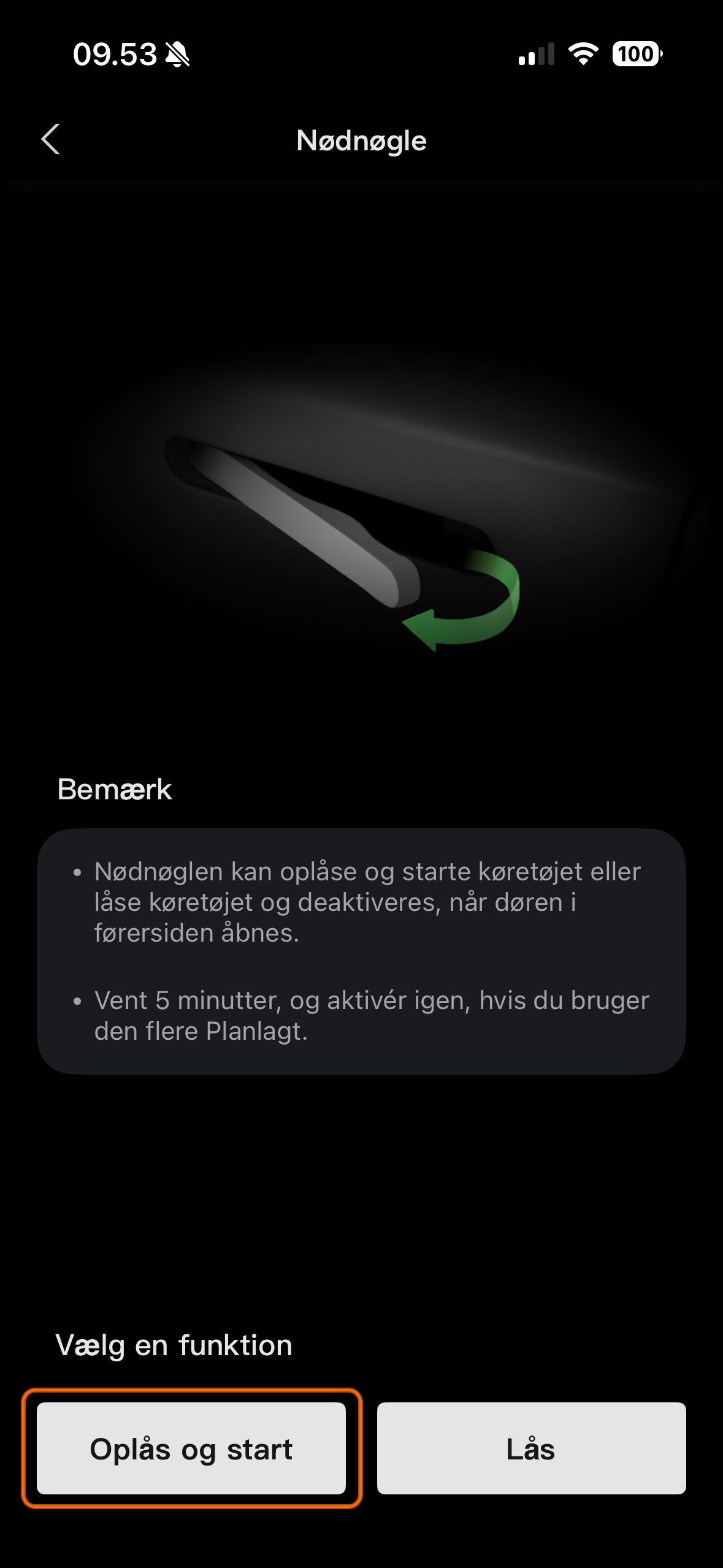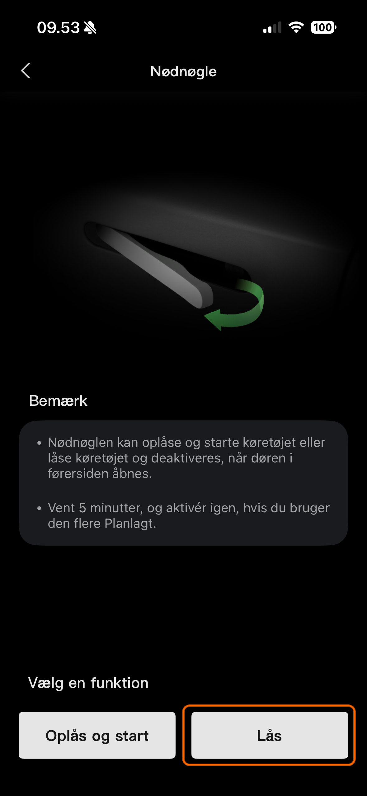 Lås køretøjet med Nødnøgle