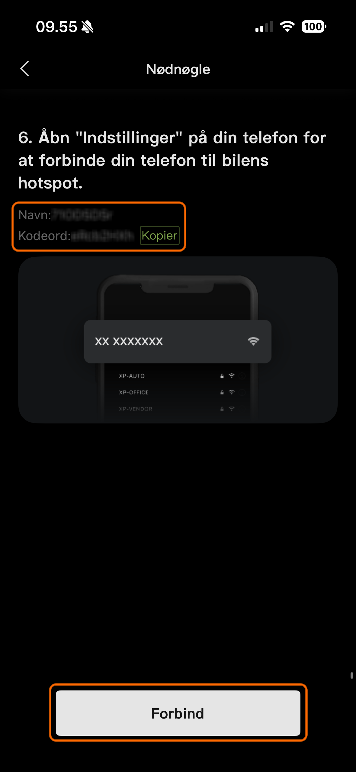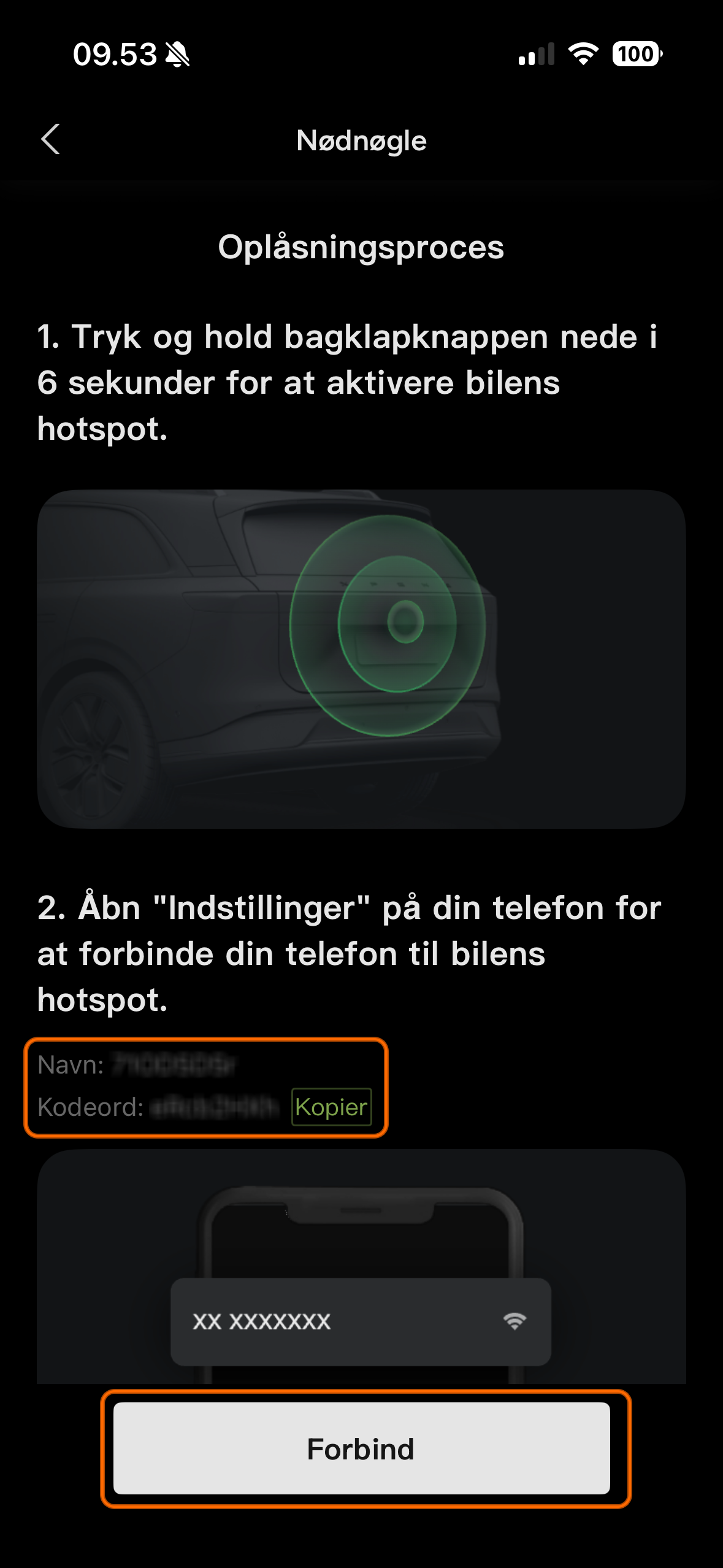 - Forbind telefonen til bilens hotspot
