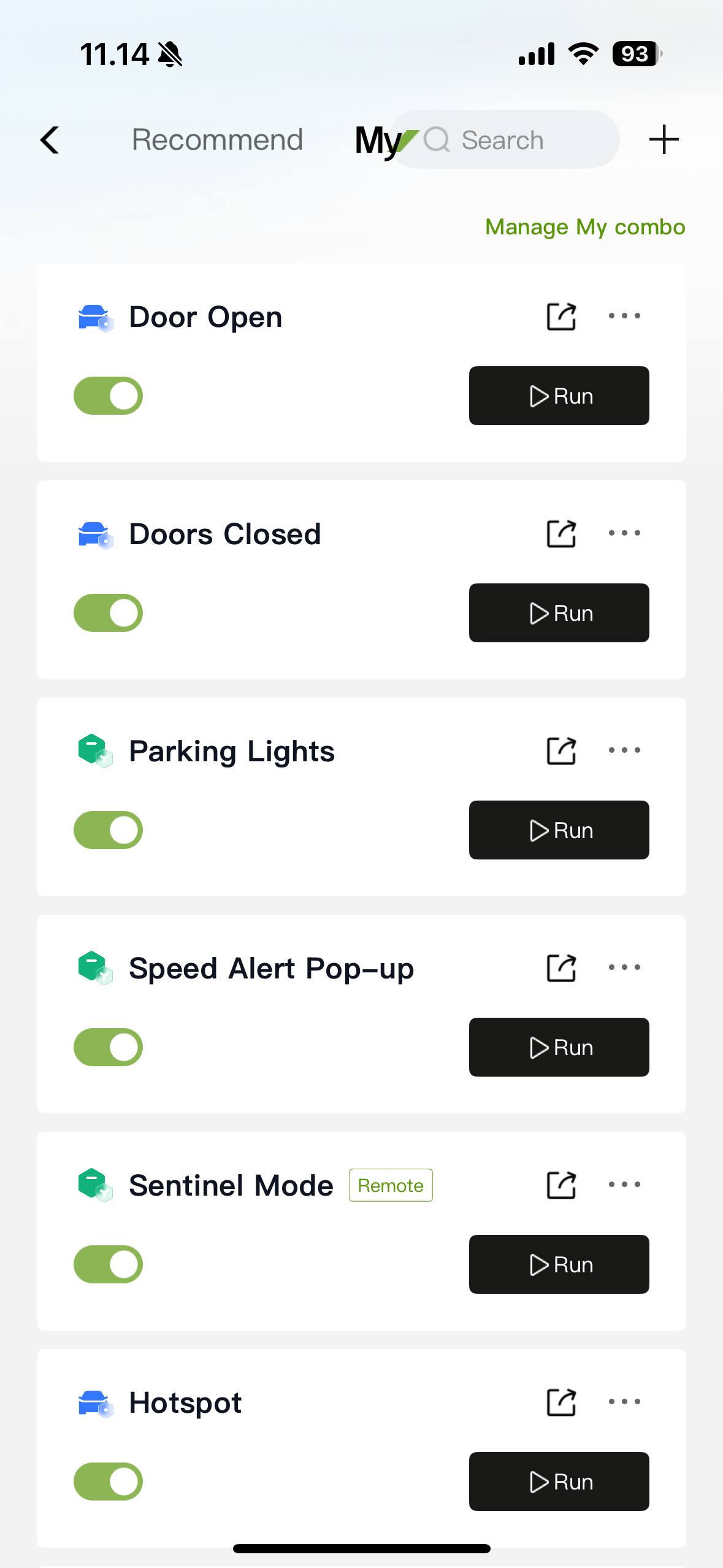 X-Combo er en funktion der gør det muligt at automatisere handlinger i bilen. Man har ud fra nogle “Betingelser” (Conditions) aktivere “Handlinger” (Actions). Funktionen i appen er endnu ikke oversat til dansk.