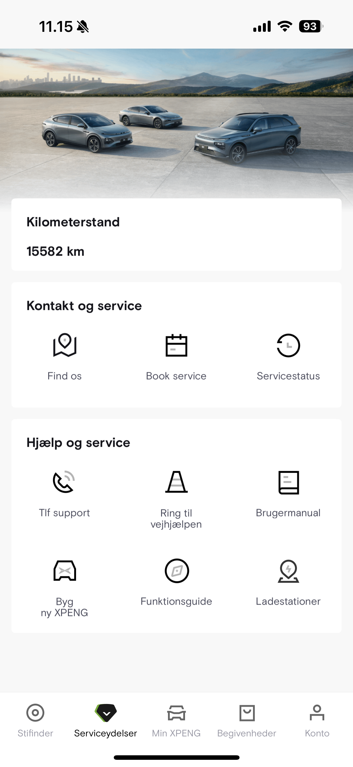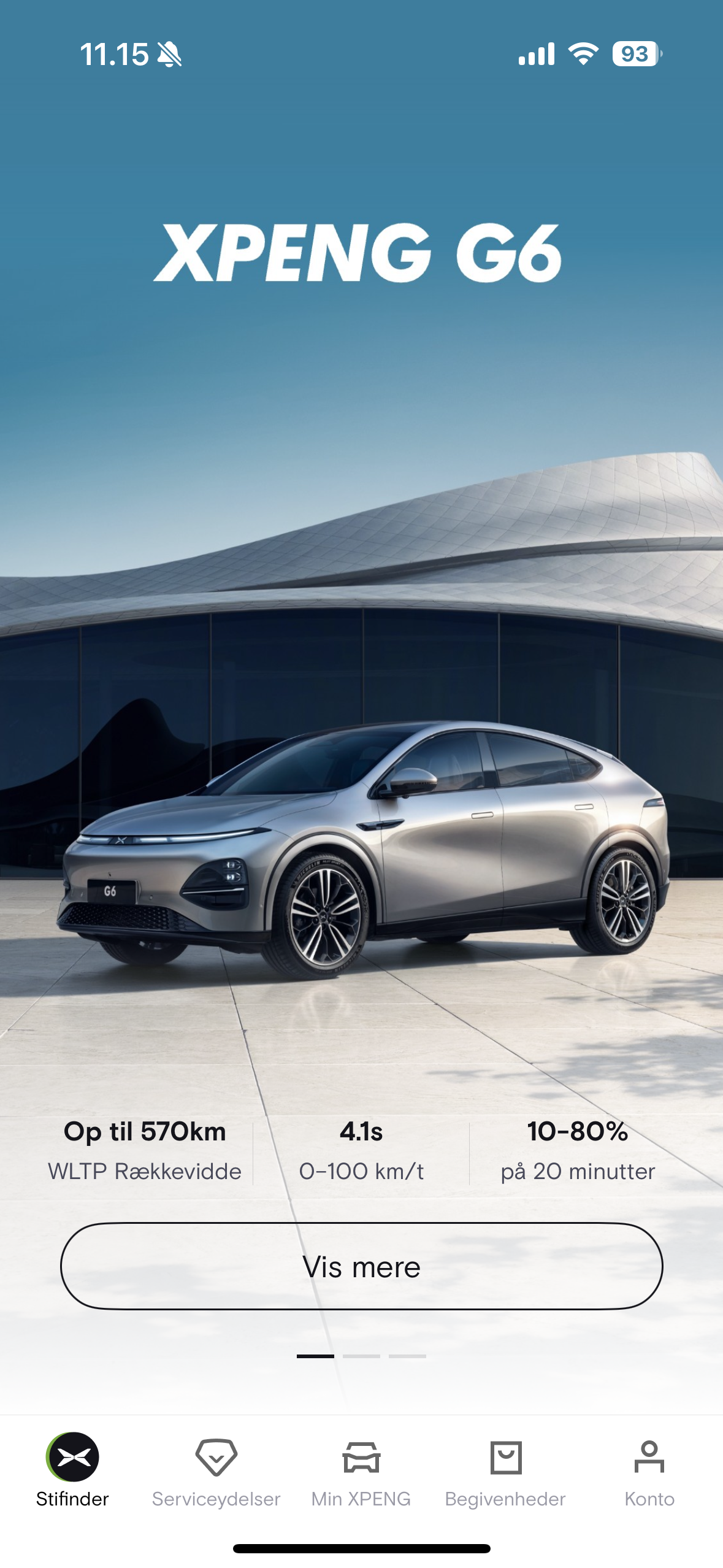 Stifinder er mere eller mindre blot en en genvej til indhold fra XPENG’s hjemmeside hvor man kan læse om bilerne, kunderservice, finansiering og leasing, samt finde servicecentre.